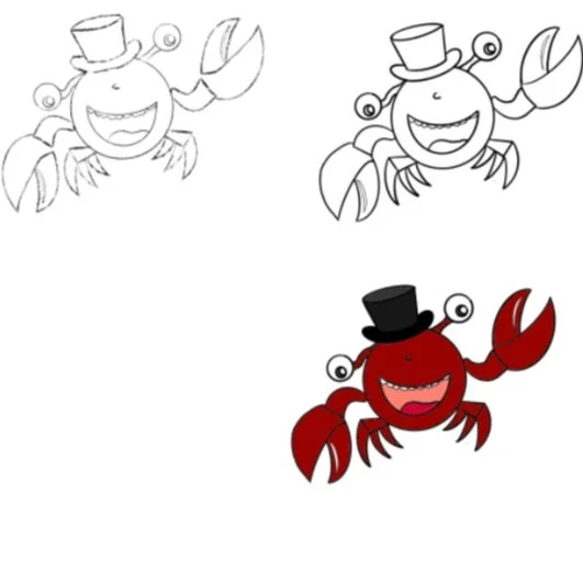 An experiment was conducted to determine whether a range of facial expressions could strengthen audience connection to a character. A series of mouth expressions were first sketched and then layered onto the existing outline of the crab character. These images were sent out for feedback, in order to find out whether a more expressive design would better resonate with viewers.